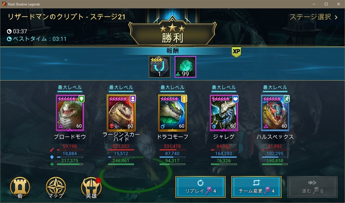 【RaidRPG】リザードマン ファクションウォー21クリア!