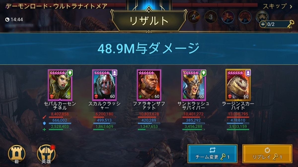 セパルカの防御力とHPがあがればもうちょい耐久できたかもね。