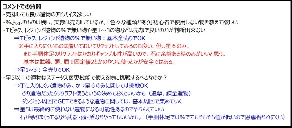 前の配信の動画に、初心者さんから遺物何売って大丈夫とかわかんねー!