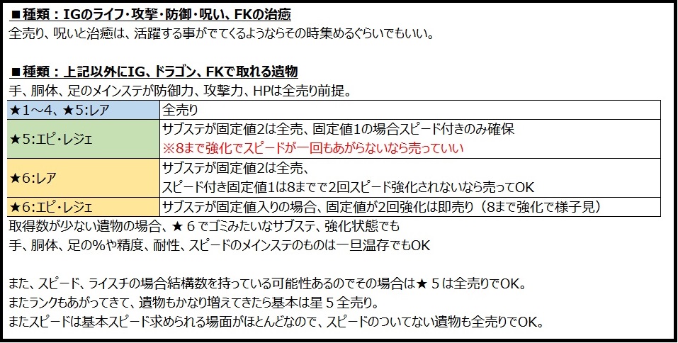 ※エピック、レジェンド遺物の%で無い物:基本全売りでOK